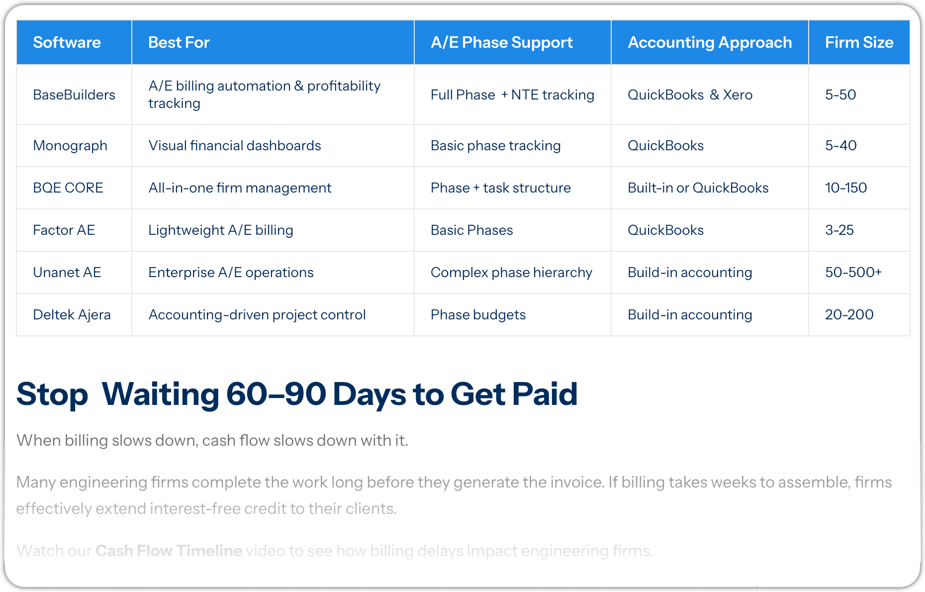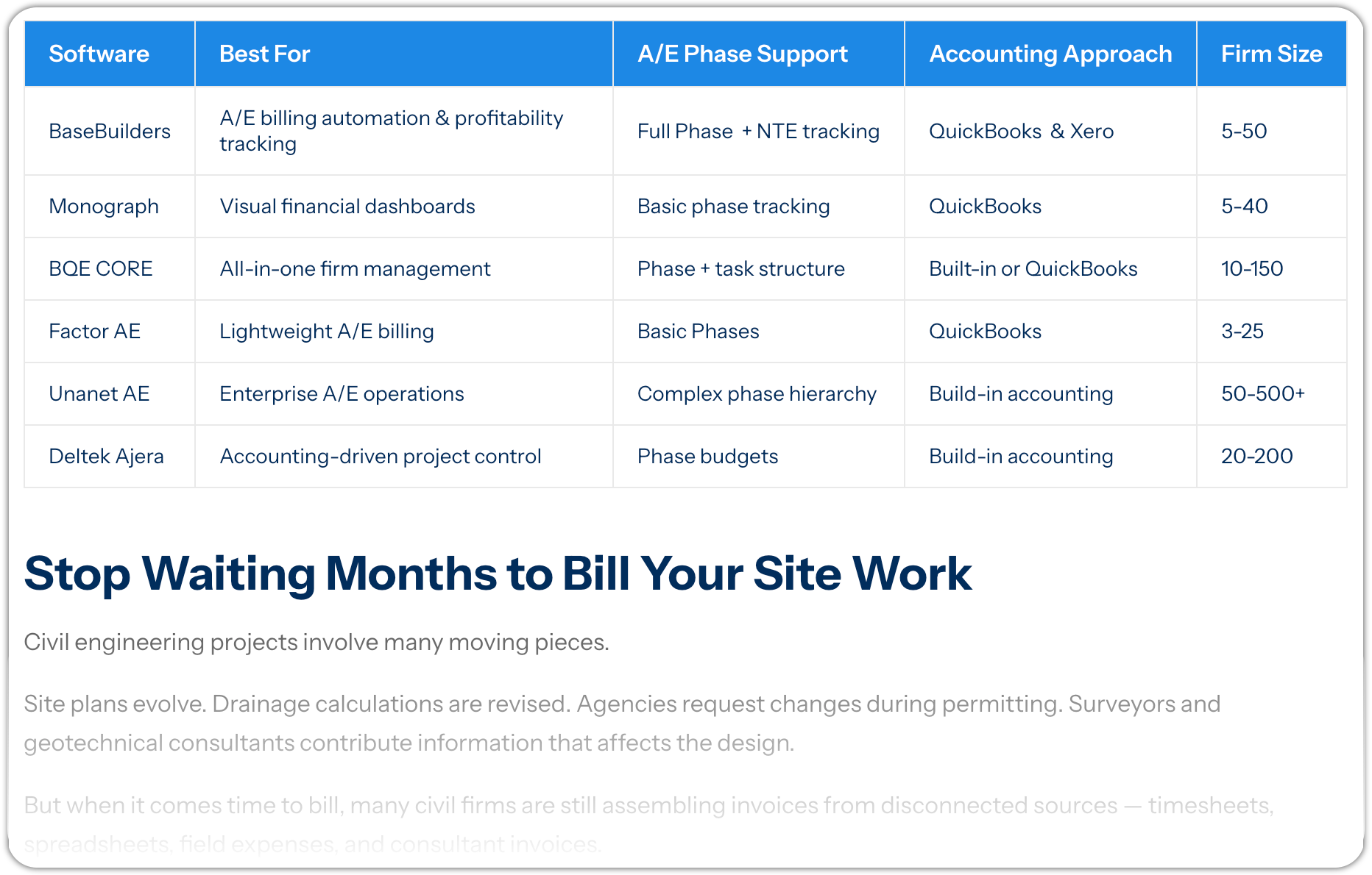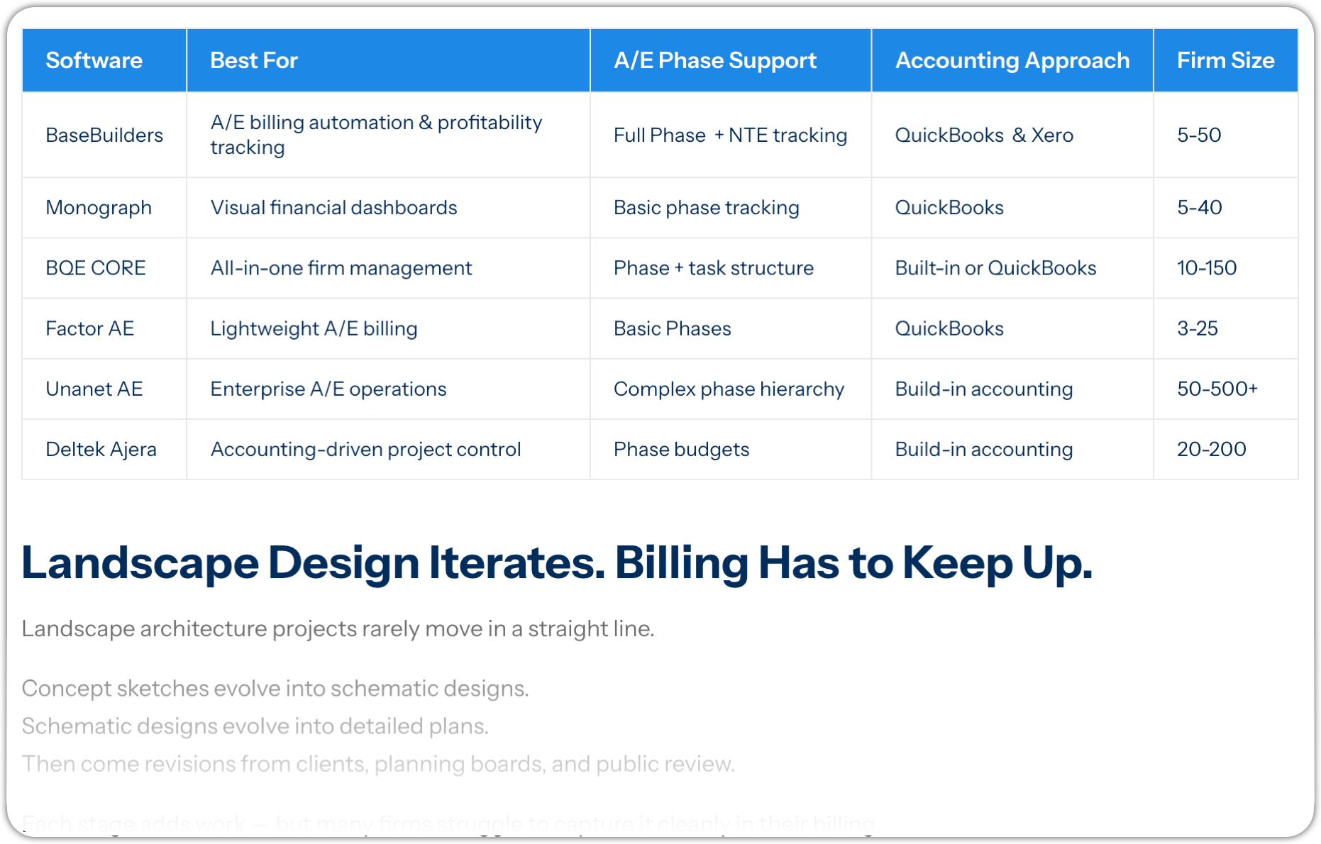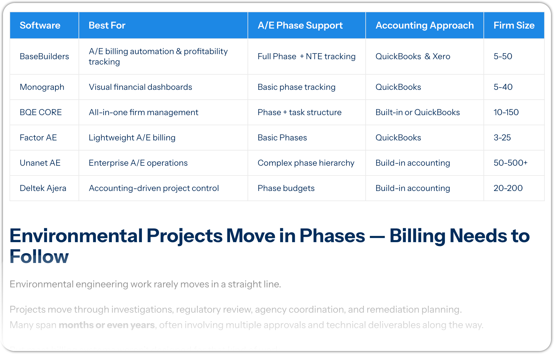 - (spreadsheets, generic PM tools, accounting-first systems, A/E-specific platforms)